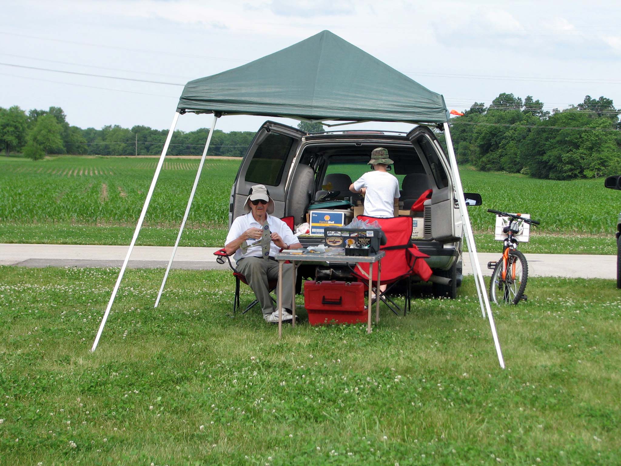 Bill Lyons and Ronald Tweet from Illinois relaxing at their canopy