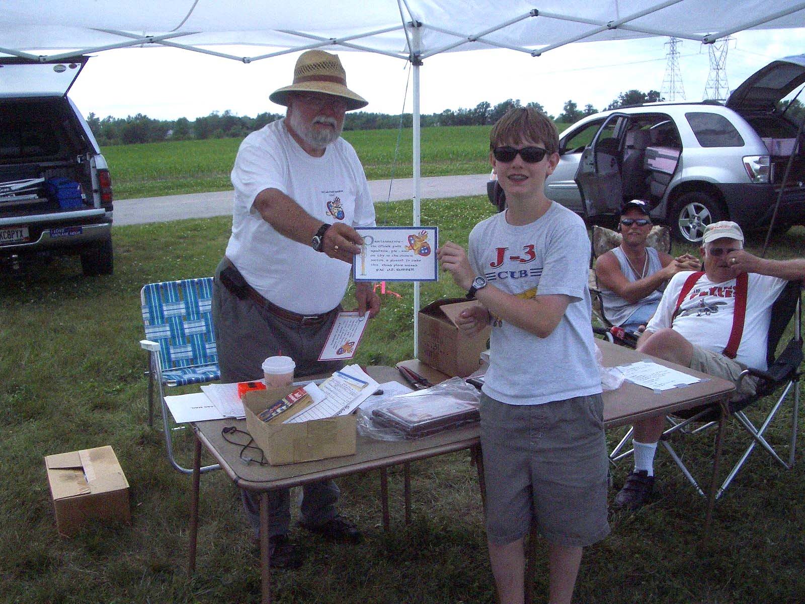 Evan Schlottman, the grandson of Daniel Olah won his first kanone. He is 12 years old from Valparaiso, IN and a member of the Cloudbusters Model Airplane Club of Michigan. He built his Vagabond NoCal from Mike Welshans plans.